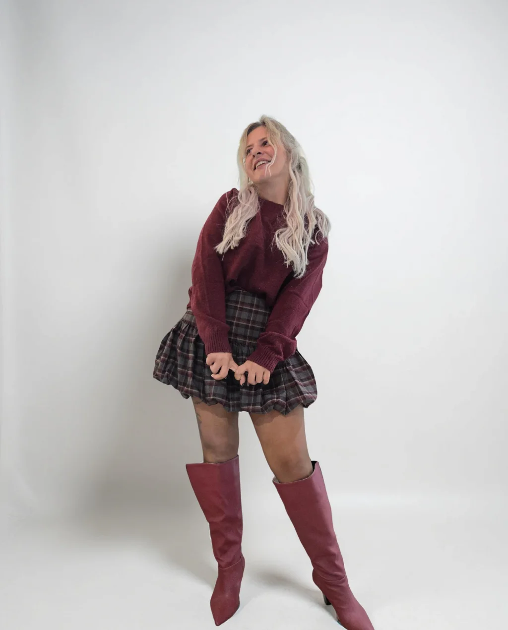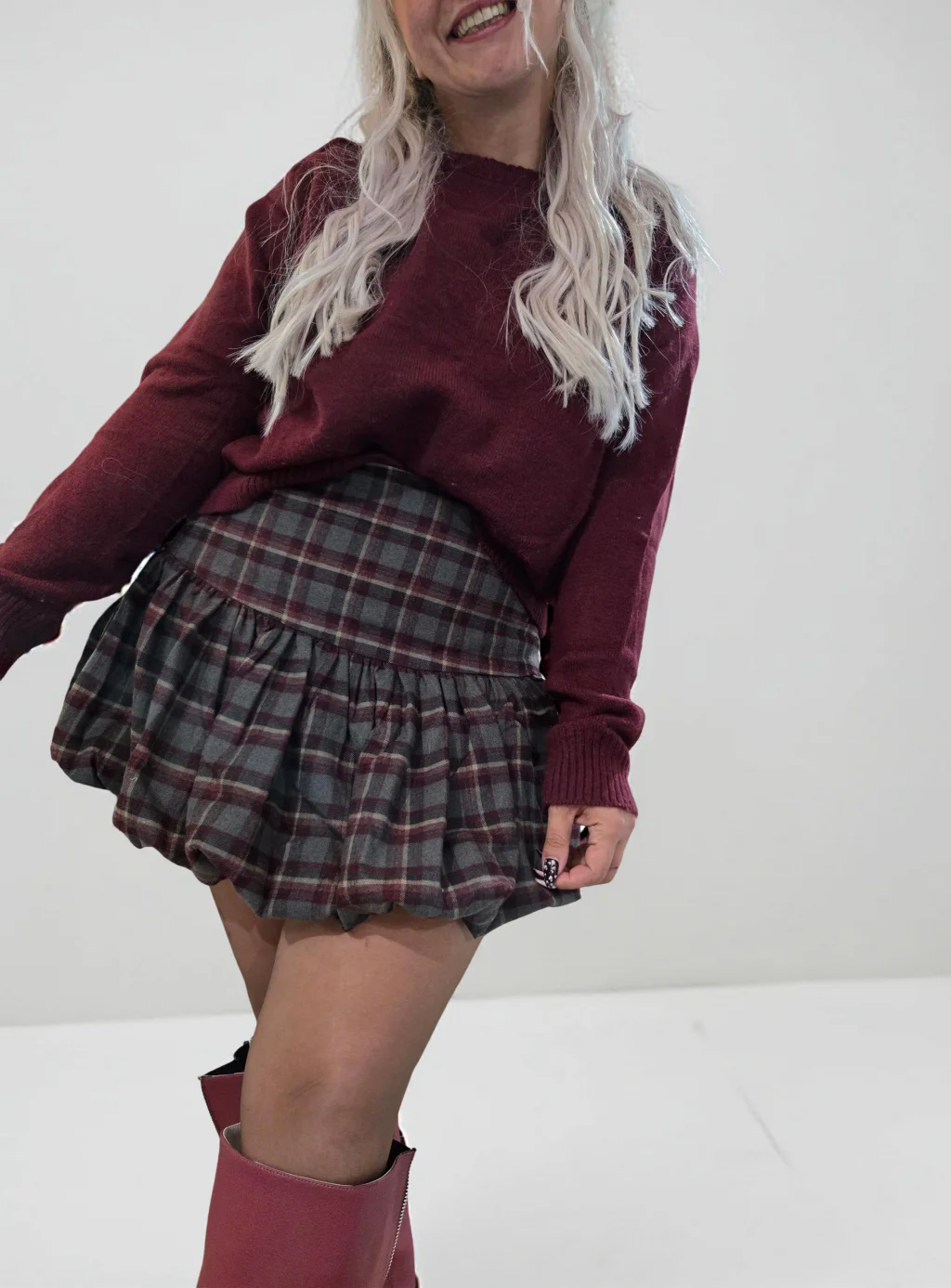 Paris Bordo Kareli Etek